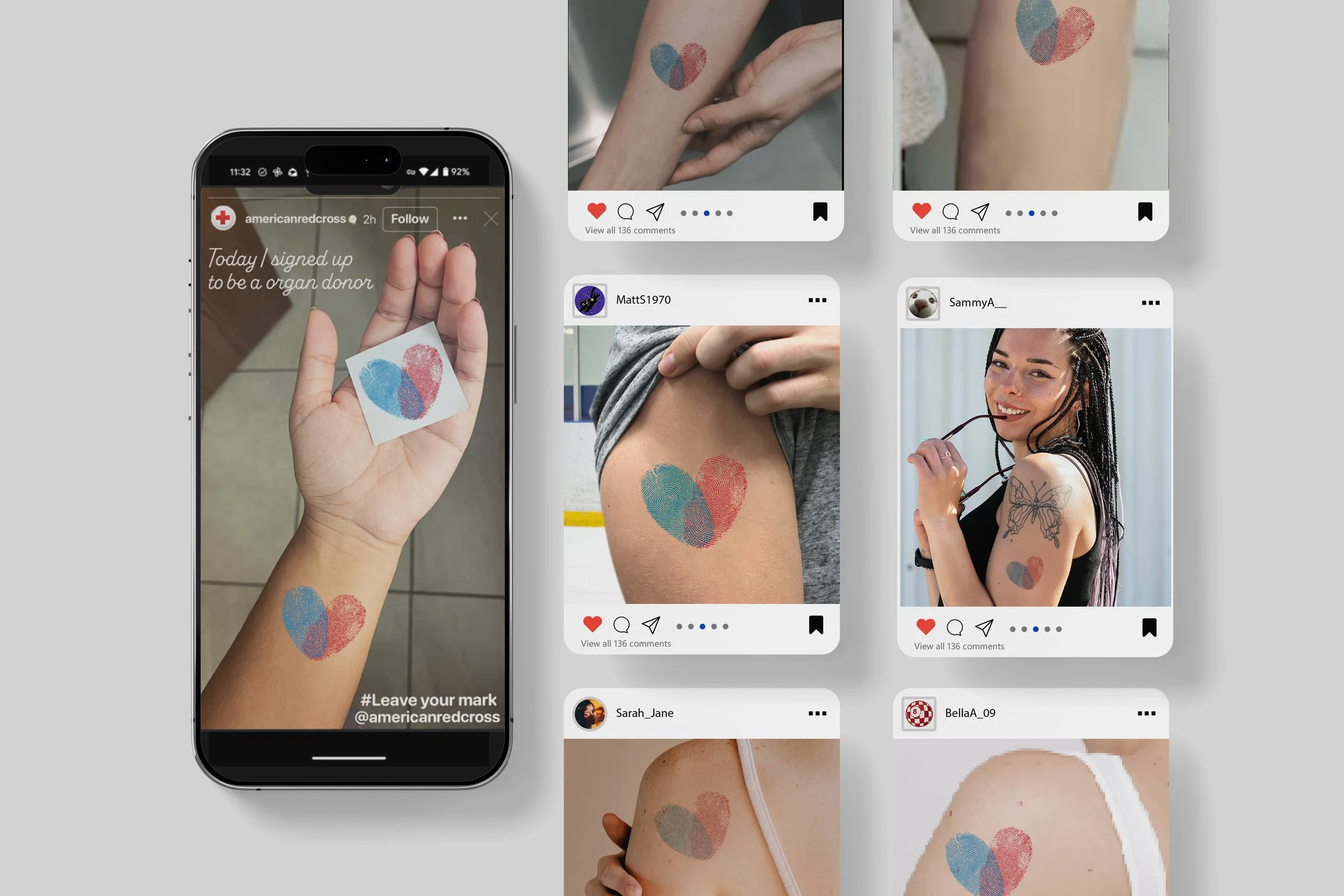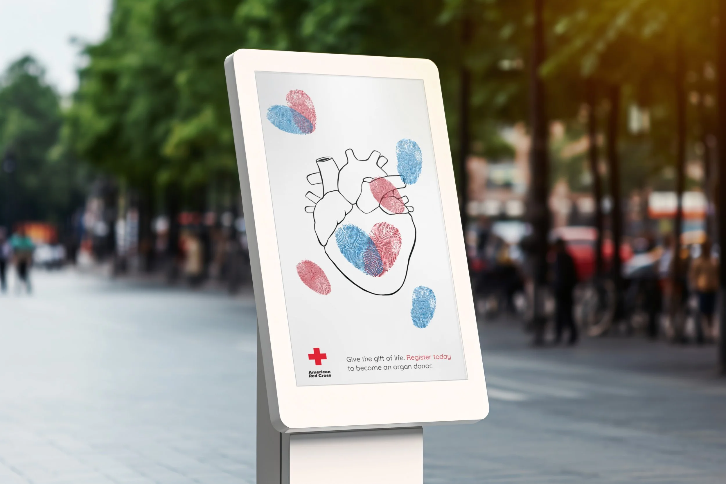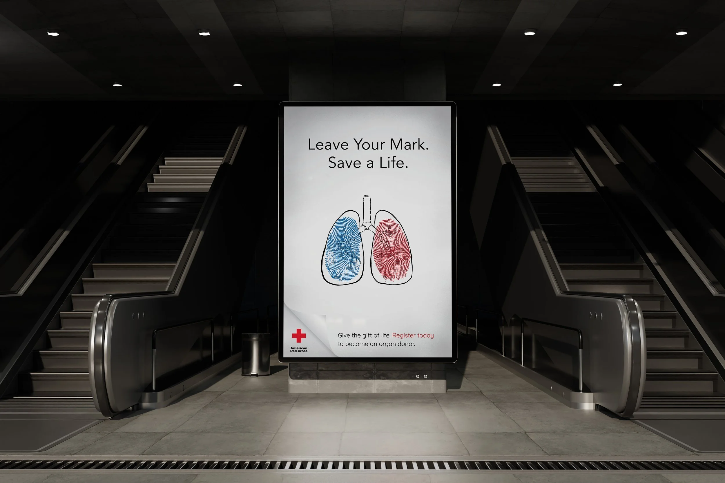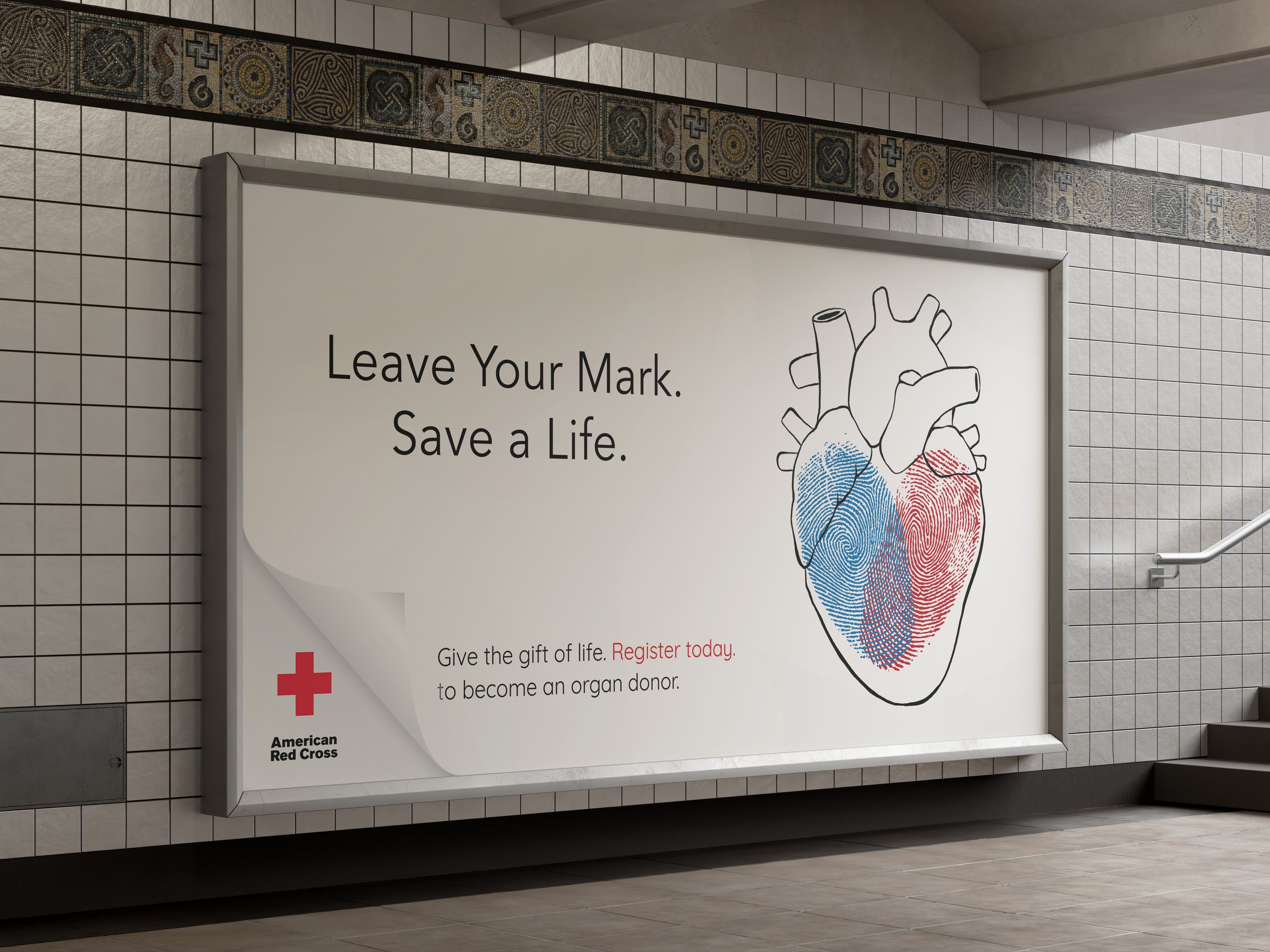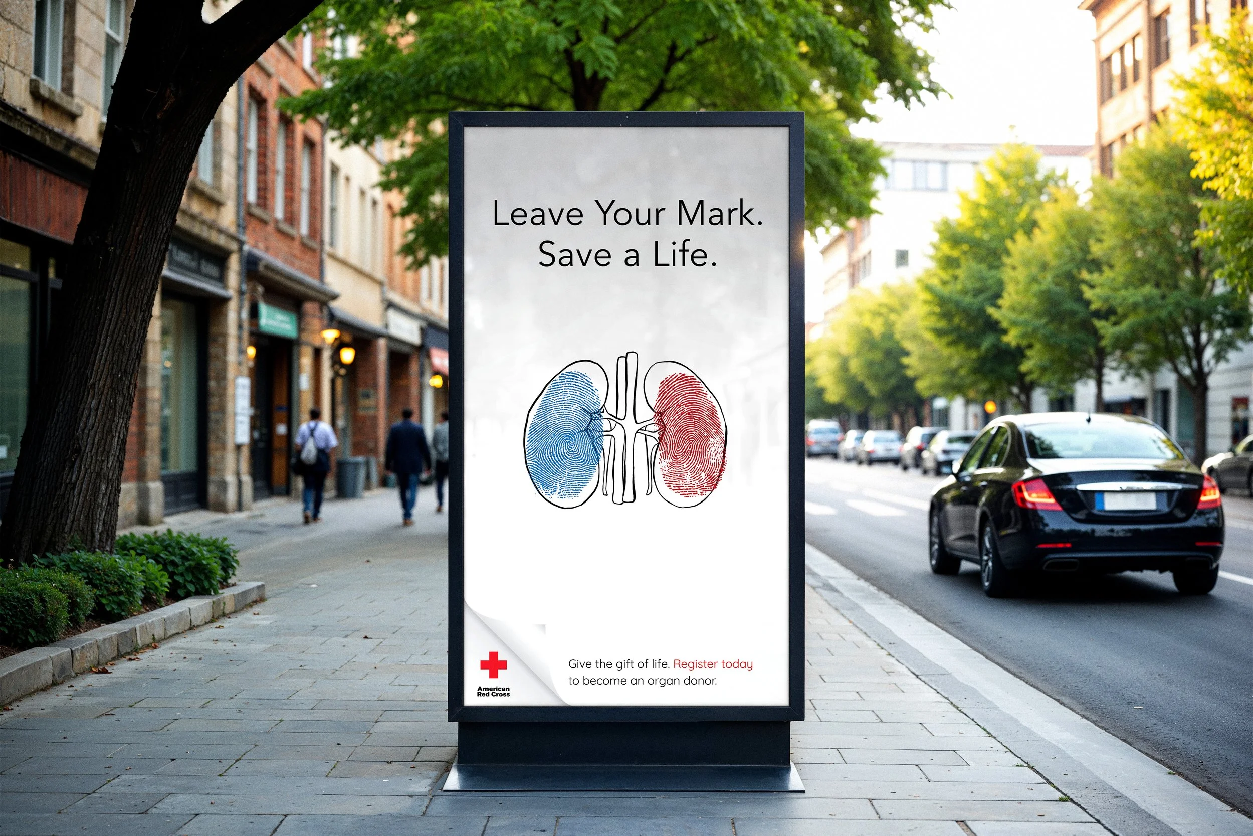 The organ donation PSA campaign for the American Red Cross raises awareness through a visually striking and emotionally driven concept centered on the idea of leaving a lasting impact. Using fingerprint-inspired illustrations to form vital organs, the design reinforces the message that one small decision can save lives. The campaign balances minimal, thoughtful layouts with tactile, human-centered visuals to create a sense of connection and urgency. Extending across posters and social media, the system maintains a consistent and impactful identity that encourages viewers to reflect, take action, and consider the power of organ donation.
