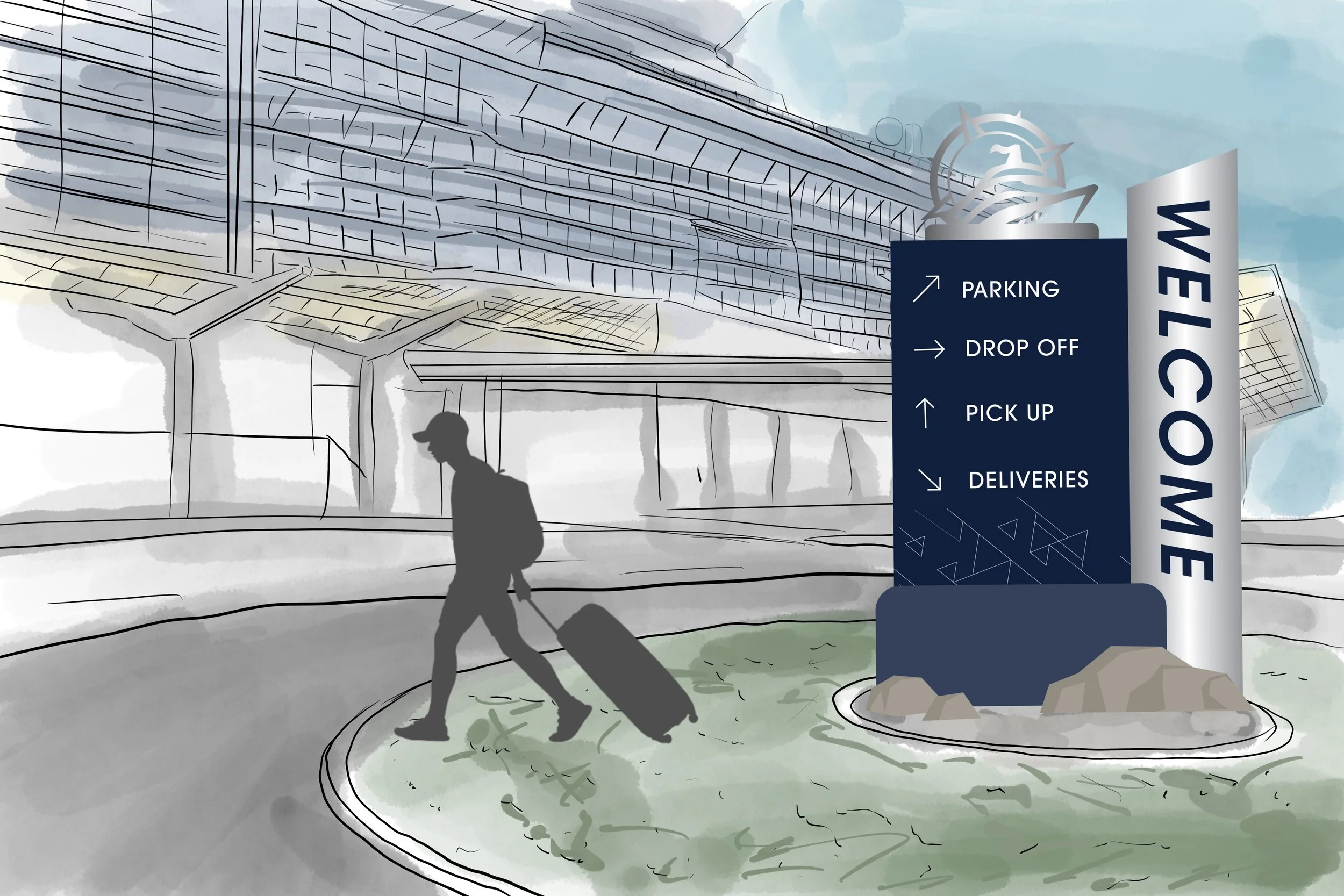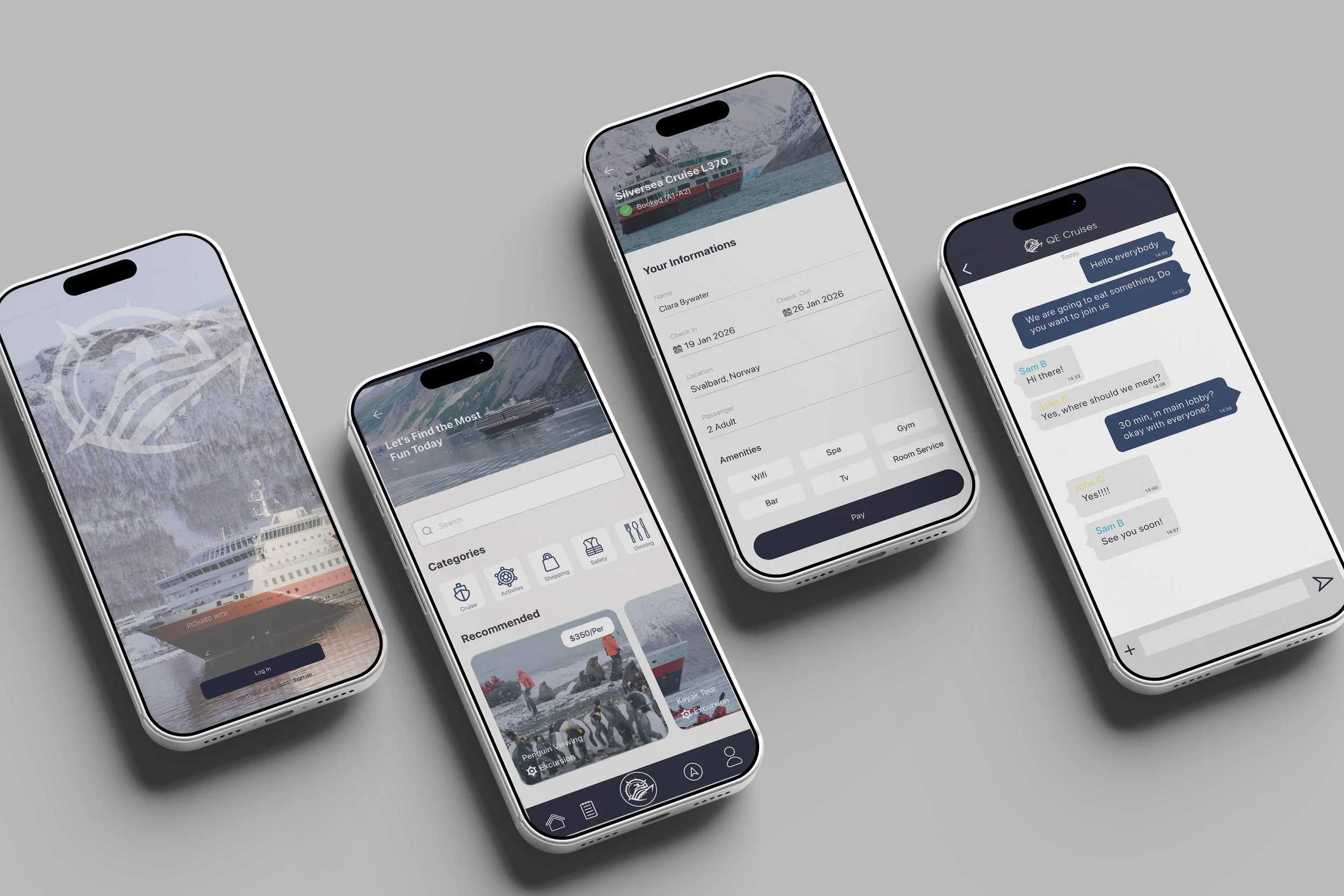 The Quark Expeditions rebrand reimagines the cruise experience through a refined visual brand system inspired by the Arctic environment. The identity shifts to cool blues and grays to better reflect the landscape while simplifying the logo into a clean, modern mark. The project focuses on environmental design, creating a cohesive way finding system that guides passengers from check-in through boarding and into onboard spaces. The system extends across signage, key cards, wristbands, mobile app interfaces, and onboard essentials, ensuring a consistent and immersive brand experience at every touchpoint. Hand-drawn renderings were used to visualize spatial applications and bring the environment to life, resulting in a design system that enhances navigation while strengthening the overall sense of place.